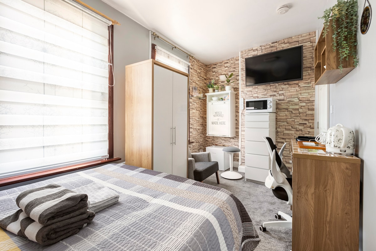 Te damos la bienvenida a nuestro tranquilo estudio londinense diseñado para la comodidad, la privacidad y el bienestar. Con acceso independiente y comodidades pensadas, es un lugar fácil para instalarse y relajarse después de explorar la ciudad. - Capacidad para 1 persona | 1 dormitorio | 1 cama | 1 baño - Ducha a ras de suelo con efecto lluvia y toallero calefactado. - Calefacción central y ventiladores portátiles. - Artículos básicos de cocina y baño - Lavadora y secadora gratis. - Estacionamiento gratuito en la calle y entrega de equipaje