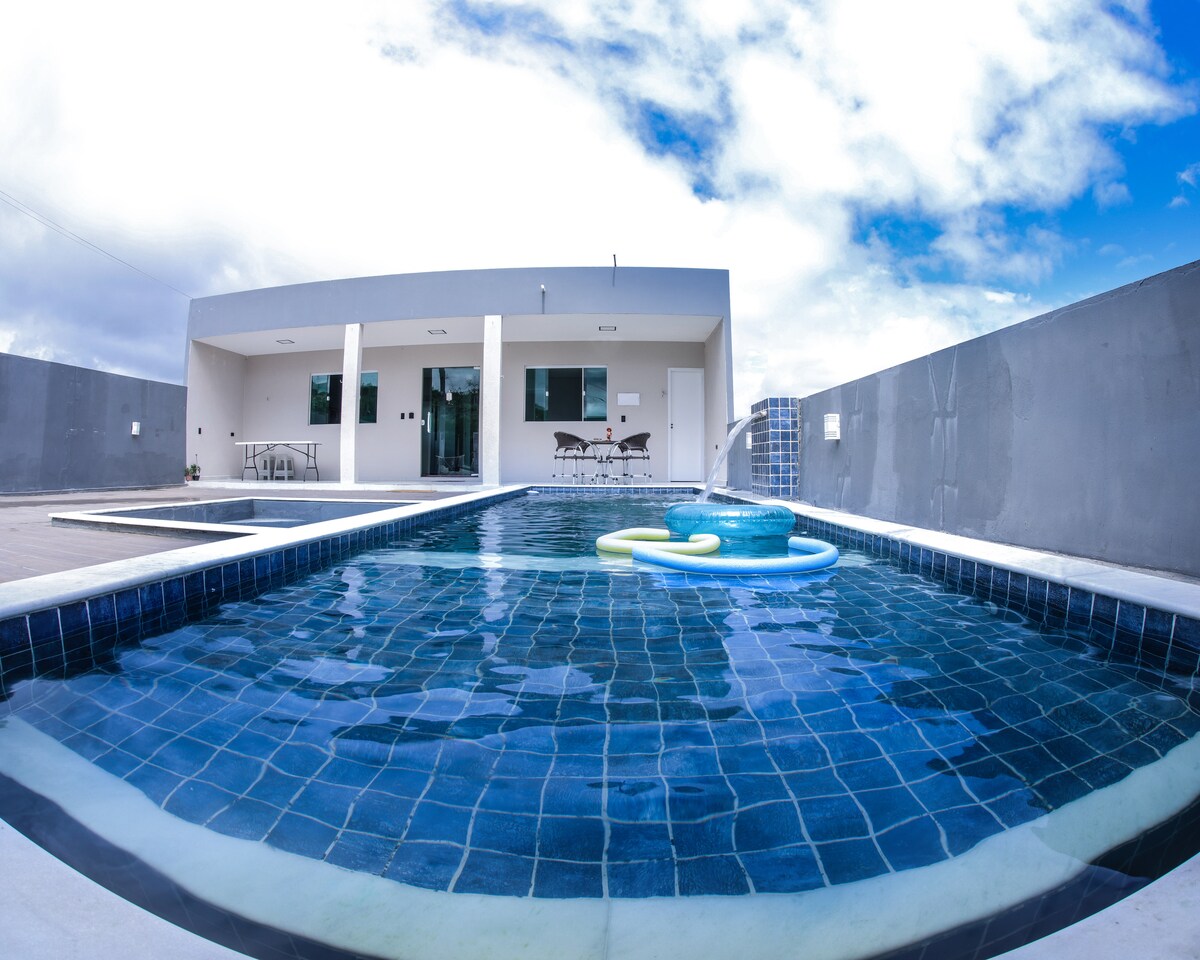 Uma casa agradável e ventilada, com sala de jantar e estar, varanda, 4 quartos com suíte, cozinha totalmente equipada, 7 banheiros, churrasqueira, campo de futebol, fogo de chão, playground e área de pescaria. A casa conta ainda conta com câmeras de segurança, Wi-Fi disponível e caseiro residente na propriedade. Alugo para confraternização, Aniversário, retiros, acampamentos de igreja e para uso familiar. Fica a 4km do centro da cidade.