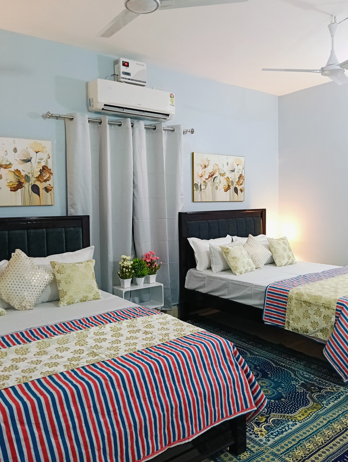 Este es un 1.5 bhk con 2 dormitorios y un baño adjunto y uno común. AVISO IMPORTANTE: Esta es una propiedad de 2 dormitorios y cocina, tenemos precios variables según el número de huéspedes: 2 huéspedes: precio base (X) 3 huéspedes: X + 1 huésped adicional Para 2 huéspedes, tendrás el dormitorio principal, la sala de estar y los baños de la cocina, pero el dormitorio de invitados se mantendrá cerrado. Para 3 o más huéspedes: obtendrás todo el 2bhk con ambos dormitorios desbloqueados. Esto se hace para que un 2BHK sea asequible para una pareja o una familia pequeña.