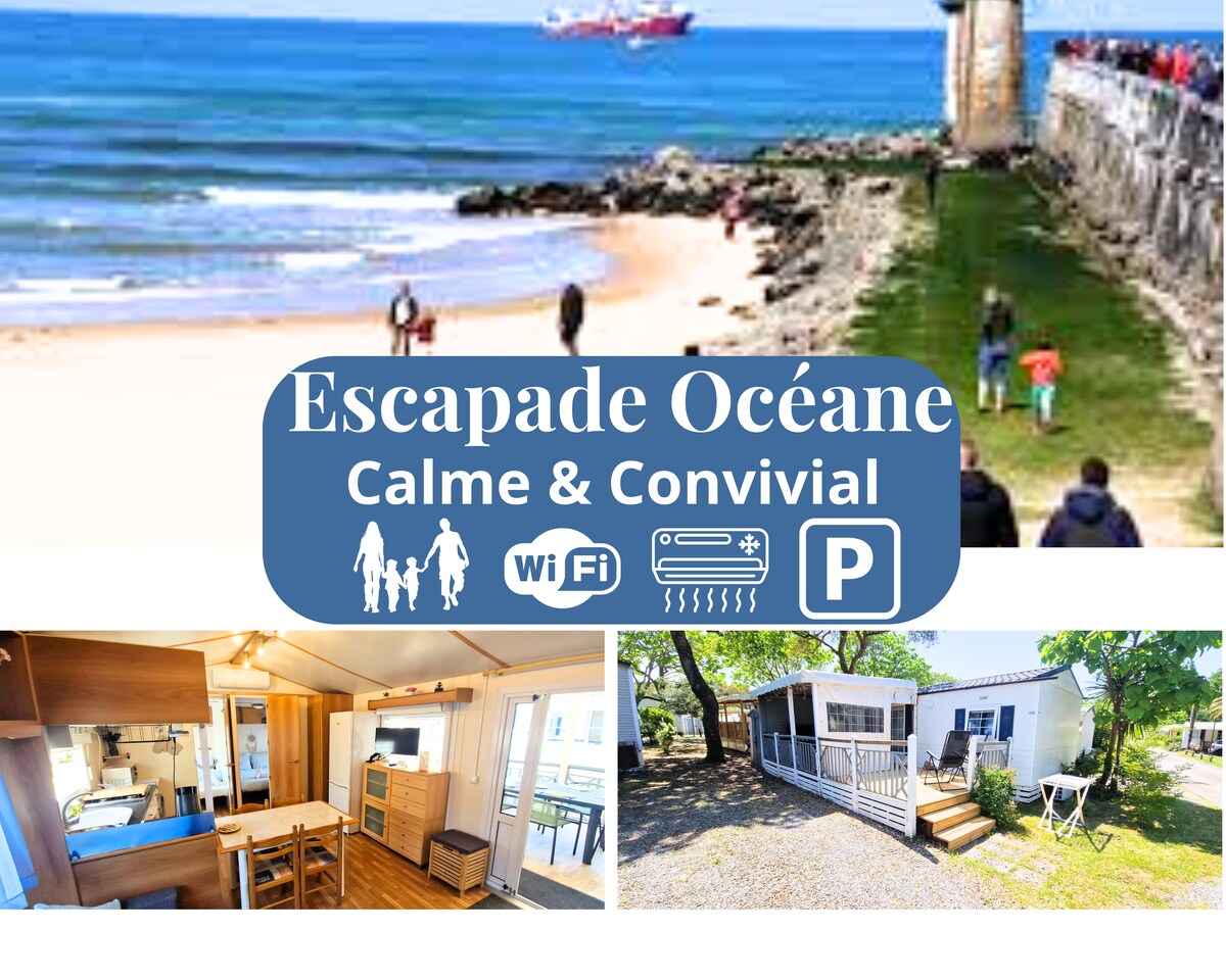 Gran chalet con aire acondicionado de 63 m2 tranquilo en medio de un exterior arbolado y florido, en un parque residencial con piscina común y segura a 10 minutos de las playas de Hossegor y Seignosse. Barrio tranquilo que permite llegar rápidamente a los carriles bici para el mar. Ideal para familias.