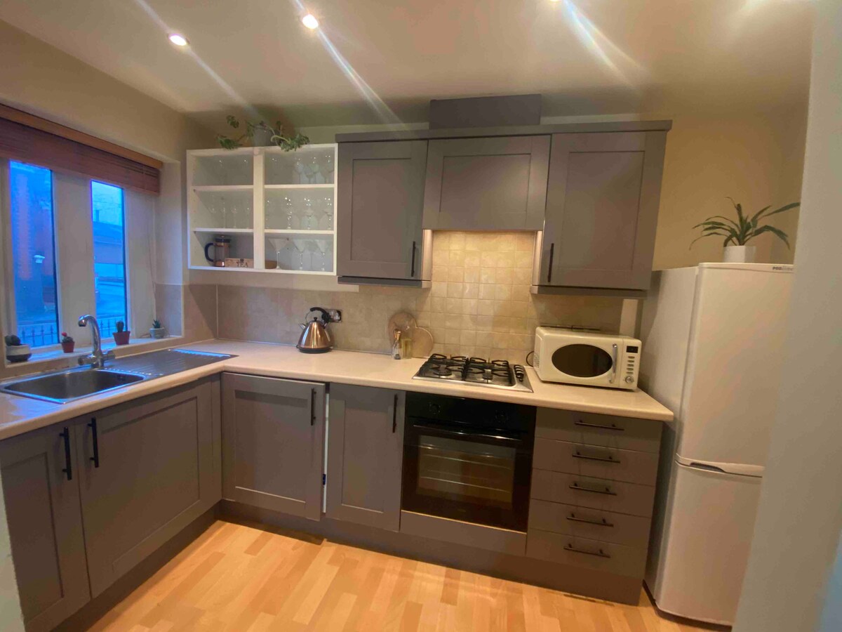 Centrally located, beautifully presented king-size 1 bed apartment. Two minutes walk to train/bus station & five minutes to restaurants & shops. Free parking. Beautiful open plan living area. Kitchen fully fitted-new cooking equipment, spices, herbs, Nutribullet, juicer & cocktail shaker! Tea, coffee & cafetiere provided. Large sofa & fire stick TV. ✨Super Fast Wifi✨ ✨King Size Bedroom & TV✨ ✨Bath & shower✨ Professionally cleaned to Airbnb ‘Commited to Clean’ programme. Access via lockbox