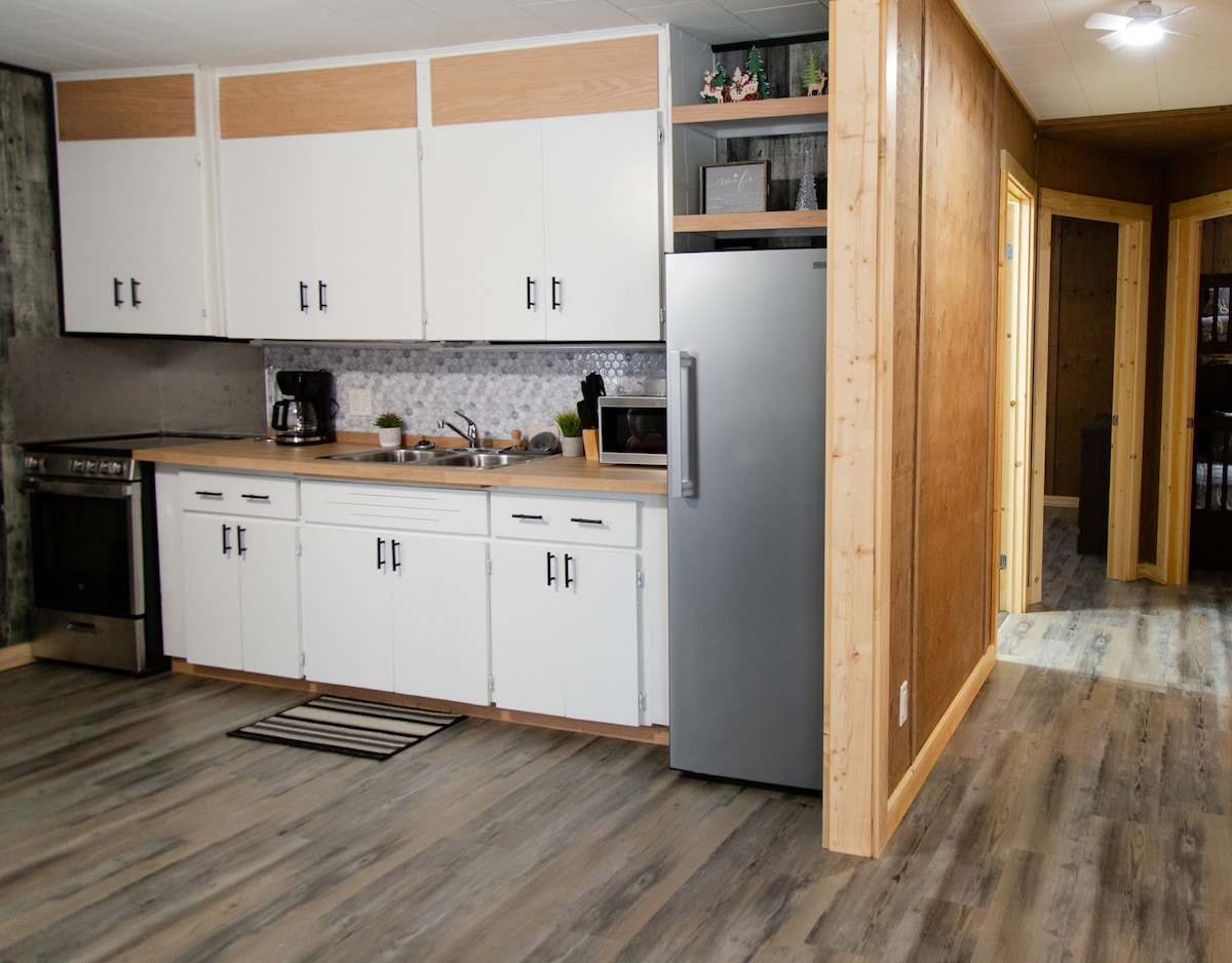 Know for its incredible hunting and fishing & LARGEST MOOSE in Manitoba! Beautiful RIVERTON. This Adorable renovated. BRIGHT! FRESH & CLEAN! Located just minutes from the water. Open style kitchen with Island and bar chairs, Sleeps 6-8 people. Included to use, new BBQ, patio furniture, Fire pit, full size newer fridge, oven, toaster, toaster oven, coffee maker, kettle, microwave, pots pans, cutlery, plates, glasses and much more. Relax & enjoy yourself! Reserve your date today!!