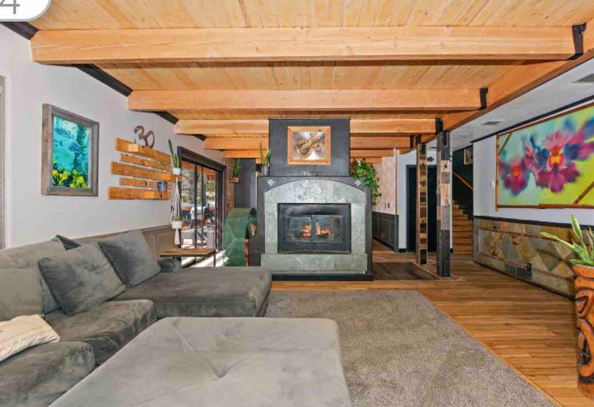 Sigue el gram en treehauschalet Treehaus Chalet es una cabaña de mediados de siglo con vistas impresionantes de Bear Mountain, elevada en una ladera en el deseable barrio de Moonridge. El alojamiento es ideal para una pareja o una familia pequeña y cuenta con: * vistas panorámicas * 2 dormitorios / 2 baños / 1000 pies cuadrados * Jacuzzi para 4 personas * Chimenea de piedra. * cocina moderna * futbolín, columpio, hamaca, juegos * Máximo 4 adultos + 2 autos * Se admiten mascotas (2 perros) * Camina hasta el zoológico alpino * A 10 minutos de todas las principales atracciones.
