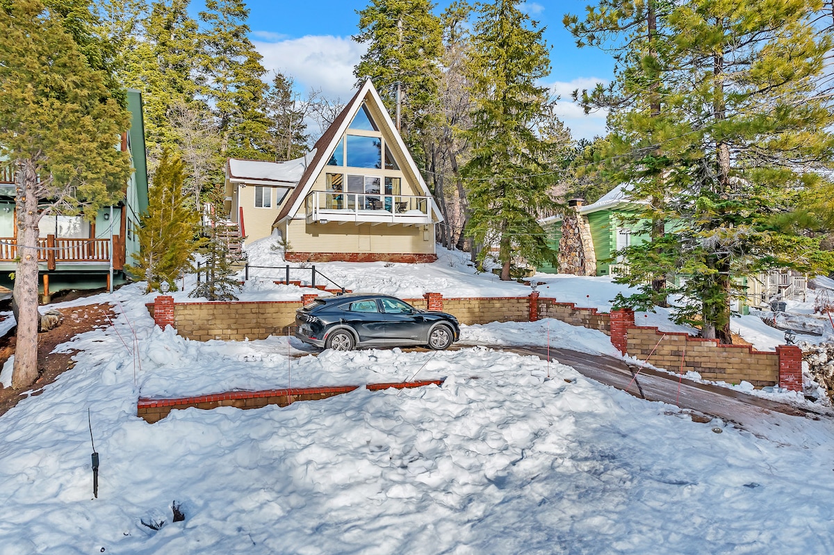 *Decoraciones navideñas/árbol* Cabaña de estilo moderno renovada en la zona altamente deseable de Moonridge. La terraza de 360° cuenta con una vista impresionante sin obstáculos de los resorts Bear Mountain y Snow Summit. Disfruta de las vistas desde el interior del alojamiento a través de las impresionantes ventanas de cristal en forma de A. Relájate en el jacuzzi caliente en la terraza mientras contemplas las estrellas. La cabaña está ubicada cerca del centro vacacional Bear Mountain, el campo de golf y el zoológico. El lago y el pueblo están a poca distancia en auto (Nota: 42 escaleras).