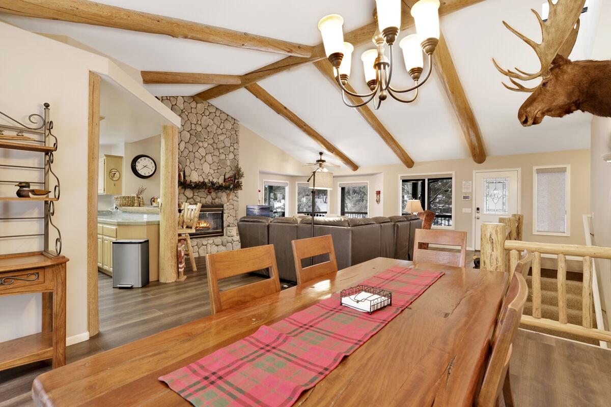 Summit Creek Pines es una cabaña Big Bear recientemente renovada que ofrece comodidad moderna en un vecindario sereno. Está a pocos pasos del lago, un parque local e ideal para ver los fuegos artificiales del 4 de julio. La casa cuenta con una sala de estar de planta abierta con una acogedora chimenea eléctrica, una cocina gourmet y un patio trasero vallado con jacuzzi. Disfruta de una sala de juegos, amplios dormitorios con televisores y servicios convenientes como wifi, estacionamiento y lavandería.