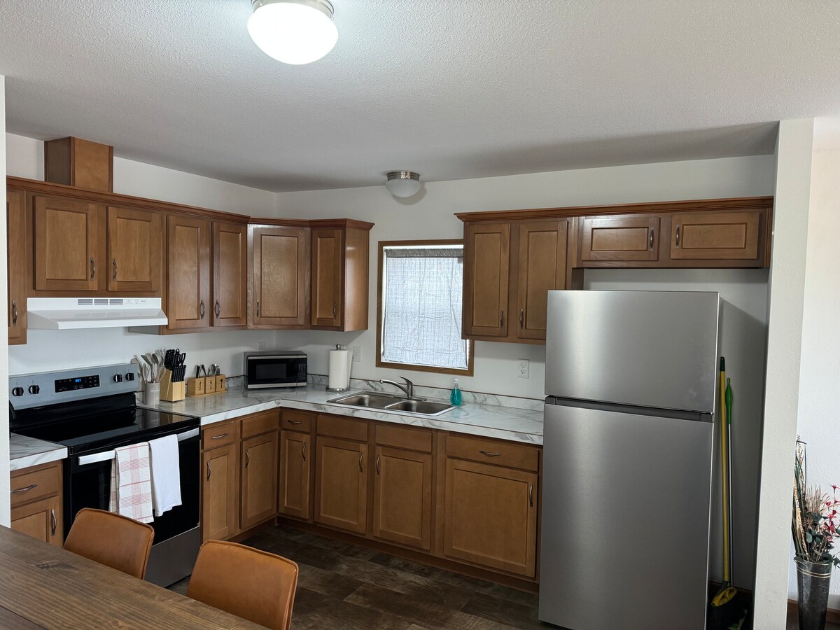 (2) Dormitorio (1) ¡Minicasa de baño con cocina completa en Belfield, Dakota del Norte! - A 15 minutos en auto del Parque Nacional Medora y Theodore Roosevelt - Unidad Sur. - A 23 minutos de Dickinson con grandes tiendas de comestibles. - A 50 minutos del Parque Nacional Theodore Roosevelt - Unidad Norte. Una pequeña casa completamente amueblada en el praire. Los restaurantes locales incluyen el Parque Nacional TR, el histórico centro de observación Painted Canyon y las vastas Badlands en Dakota del Norte. Justo al lado de la autopista I-94 cerca de restaurantes y servicios.