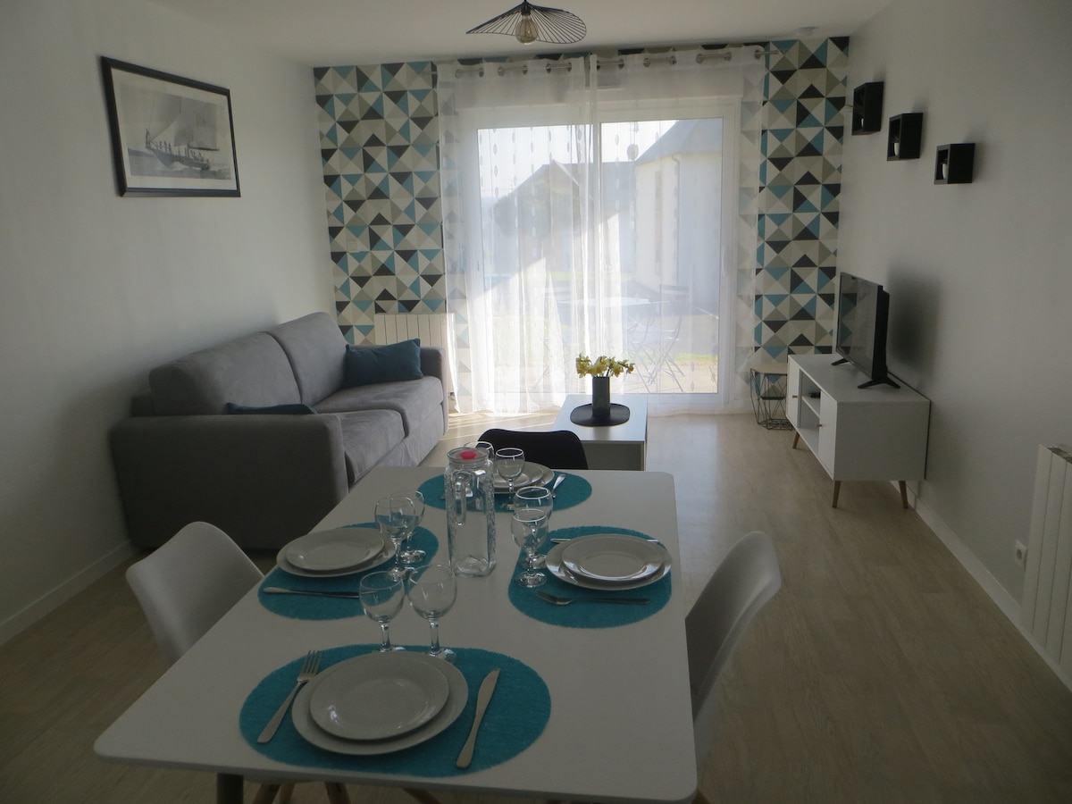 Apartamento nuevo (entrega julio 2019) de 47 m2 frente al mar y al pie del sendero de aduaneros GR 34). Playas a 250 m, 450 m y 600 m de la gran playa del Casino. El alojamiento en el 1.º piso tiene una terraza de 6 m2 con vistas a la bahía de St Brieuc y las islas St Quay, una felicidad pura para sus comidas. En el corazón de la localidad costera con actividades náuticas, aptas para familias, pero también nocturnas (bares, discoteca, casino y cine. Alojamiento adaptado para personas con movilidad reducida.