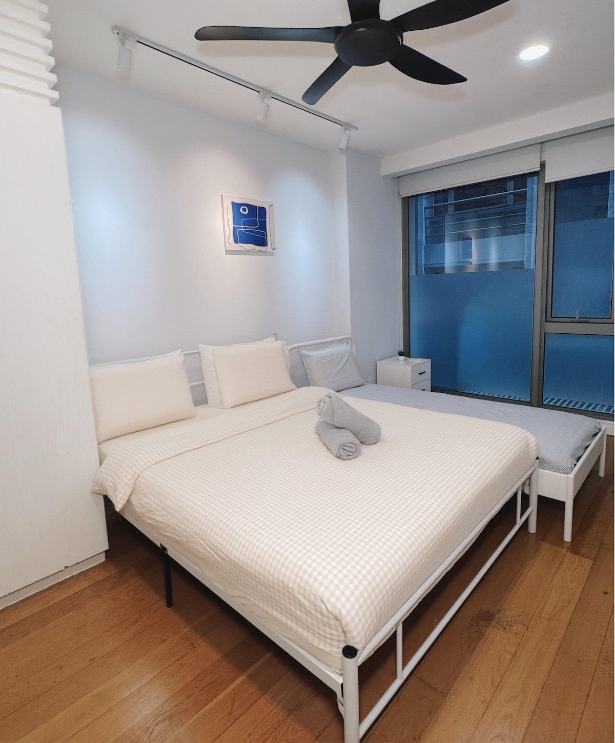 Este apartamento de 1 dormitorio cuenta con una vista impresionante del horizonte de KL. Cuenta con un salón con sofá de 3 plazas, mesa de comedor, cocina, escritorio y un gran balcón frente a la Torre KL y las Torres Petronas. Viene con TV de 55 pulgadas, wifi de alta velocidad y una cama tamaño queen en la que puedes acomodarte cómodamente. *La otra unidad de este apartamento de llave doble es un estudio compacto con cama tamaño queen, despensa, baño y bañera. Pueden caber amigos que viajan contigo con privacidad. ¡Te invitamos a solicitar más información!