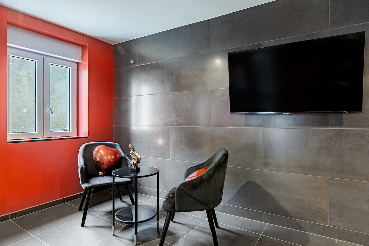 Escápese a nuestro romántico loft de 55 m² en Hoenheim, diseñado para 2 personas. Disfrute de un espacio único con bañera de hidromasaje, billar y terraza privada. Con una ubicación ideal, a solo 15 minutos en autobús del centro de Estrasburgo. Le espera una escapada relajante e íntima, con todas las comodidades modernas para una estadía inolvidable.
