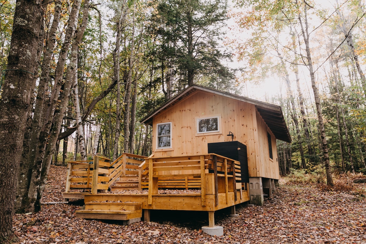 Ubicado en el bosque y en Adams Pond con nueva sauna de leña. La cabaña se siente totalmente oculta, pero está a menos de 10 minutos de Bridgton y Nápoles, senderismo, playas y restaurantes. Los bosques son hermosos y tranquilos y el estanque está justo al final de un camino musgoso. Ideal para parejas o un fin de semana fuera. Terraza grande con parrilla y ducha exterior, fogata. Hay un muelle compartido en el estanque para nadar, pescar o simplemente disfrutar de la vista, así como una canoa y 2 kayaks, y una tabla de paddle.