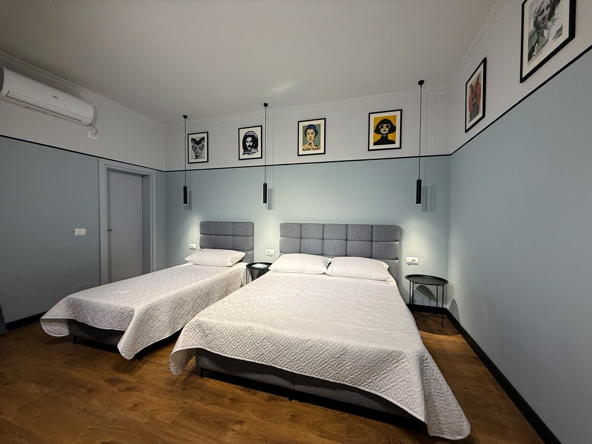 Stay in a chic boutique room in Blloku, Tirana’s vibrant center. Enjoy premium linens for ultimate comfort and complimentary coffee, tea, and bottled water. The room features fast Wi-Fi, a smart TV, and all essentials for a comfortable stay. Self-check-in makes your arrival hassle-free. Surrounded by trendy cafes, restaurants, and nightlife, you’ll experience the best of the city. Whether for business or leisure, this stylish space offers everything you need for a perfect stay.