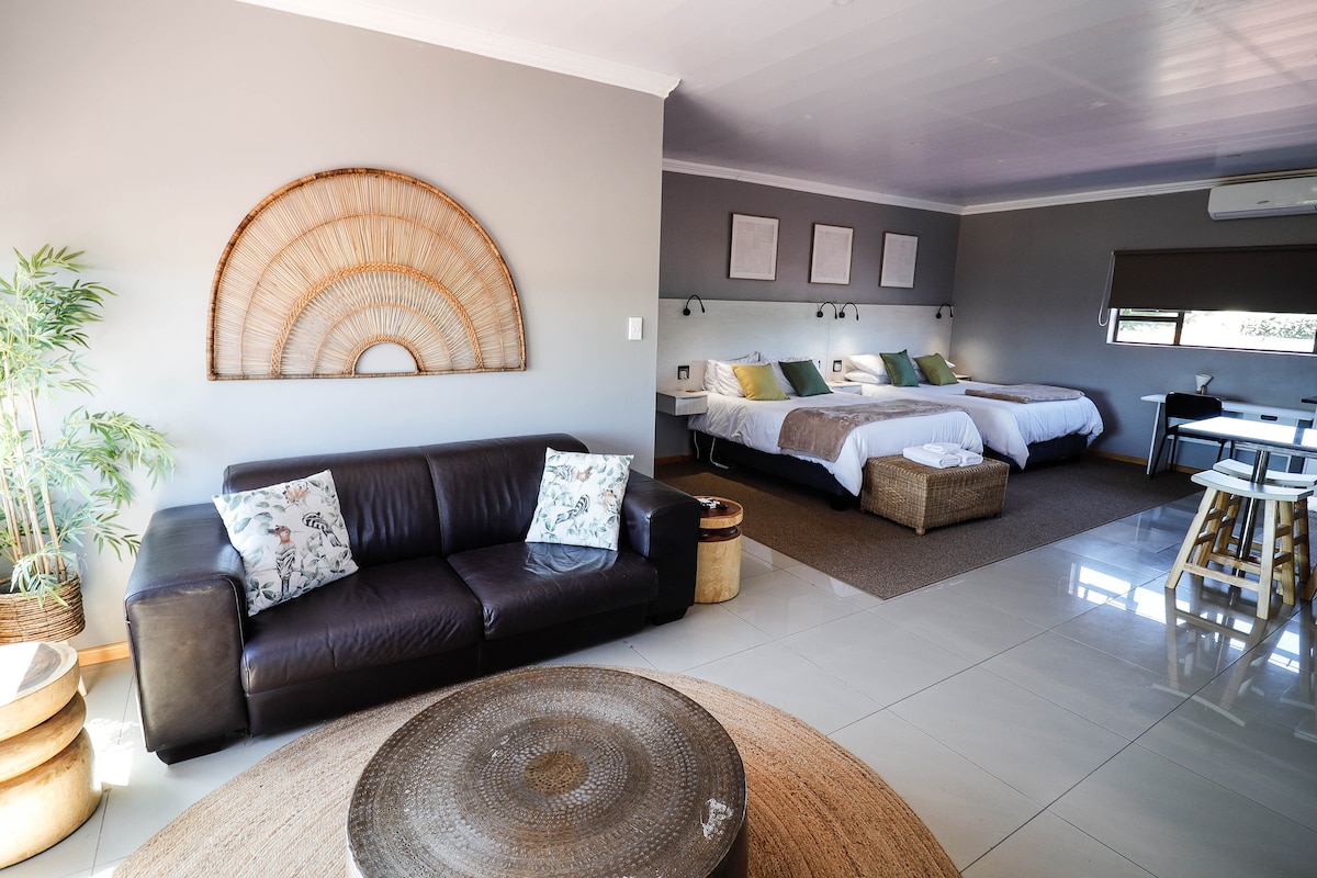 Disfruta de total privacidad en tu propio chalet independiente con jardín, perfecto para parejas que buscan comodidad y tranquilidad. Olive Chalet ofrece una cama tamaño queen, cocina pequeña, patio privado y zona de braai en nuestra espaciosa propiedad de 2 hectáreas. Una escapada tranquila en Rayton, con una sensación fuera de la ciudad. La propiedad tiene un manantial natural (de temporada) con un montón de vida de aves y animales para mantenerte encantado para una escapada o escala verdaderamente relajada.