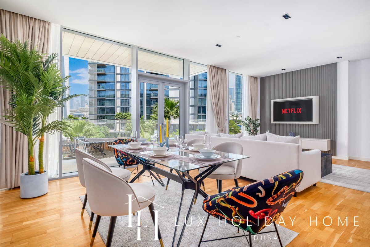 Tu sueño 2BHK rodeado por el Golfo Pérsico. Ubicada en la isla más emblemática de Dubai Blue Waters, la zona es un gran lugar de vacaciones para los huéspedes que buscan relajarse junto a la playa o como un viaje familiar con muchas opciones de entretenimiento y restaurantes en la zona, como Dubai Eye, la playa JBR y el Caesars Palace. El ambiente contemporáneo del departamento diseñado por nuestros diseñadores bien viajados hará de este el alojamiento perfecto durante tu estadía.