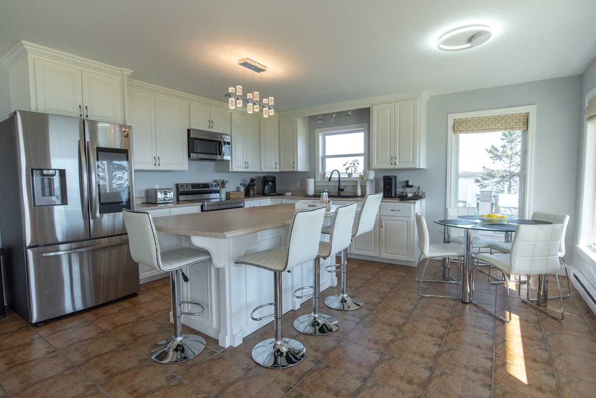 Enjoy panoramic ocean views from a contemporary waterfront home. Wake up with the sunrise over Passamaquoddy Bay (Bay of Fundy). Spend the day beach combing or just sitting on the deck and watching the tide. At night, get cozy with Netflix in our upstairs entertainment area or have an outdoor fire & star gaze. Drive 10 min to St. Andrews/35 min to New River Beach. Perfect for multiple couples, families, working remote, holiday gatherings or girls getaway (+ divers’ and bird watchers’ delight!).