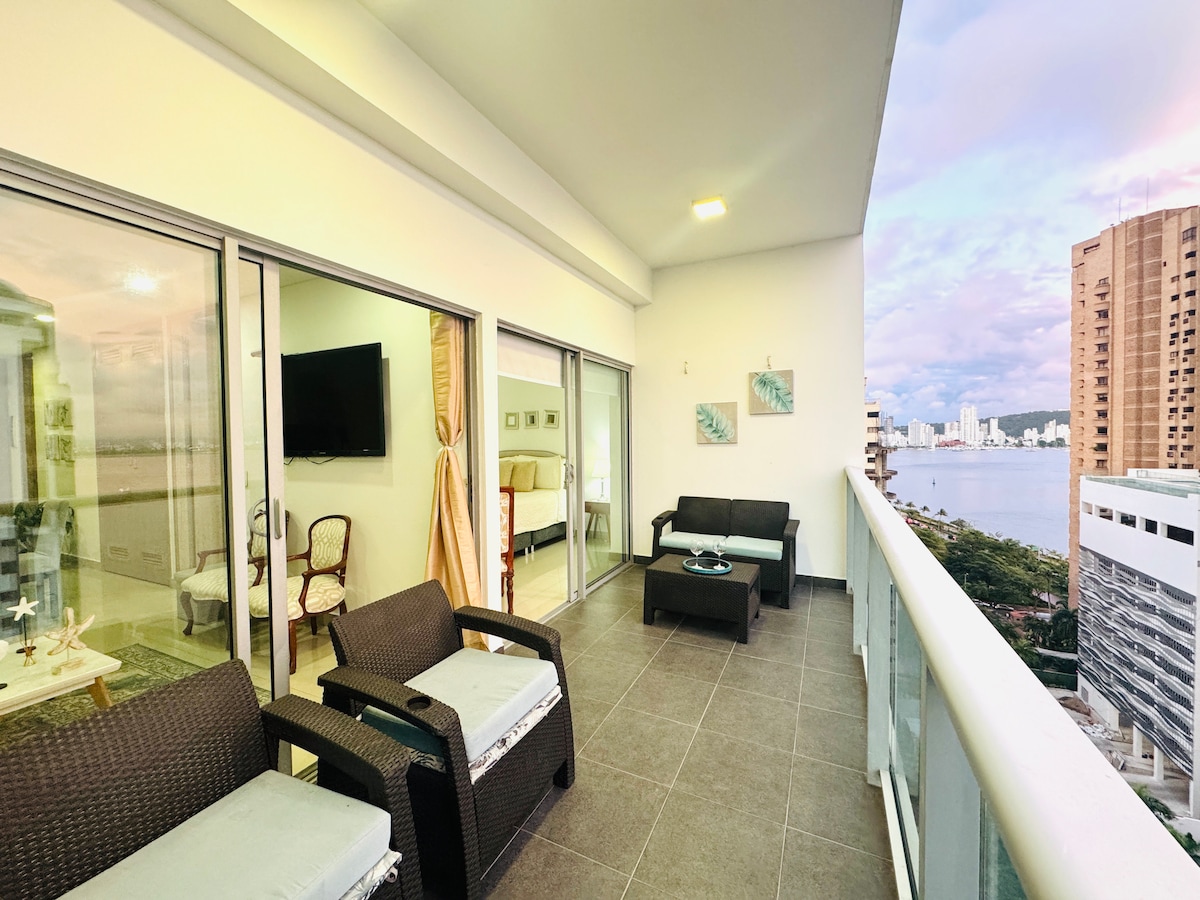 Apartamento con vista a la bahía de Bocagrande | Balcón | Piscinas