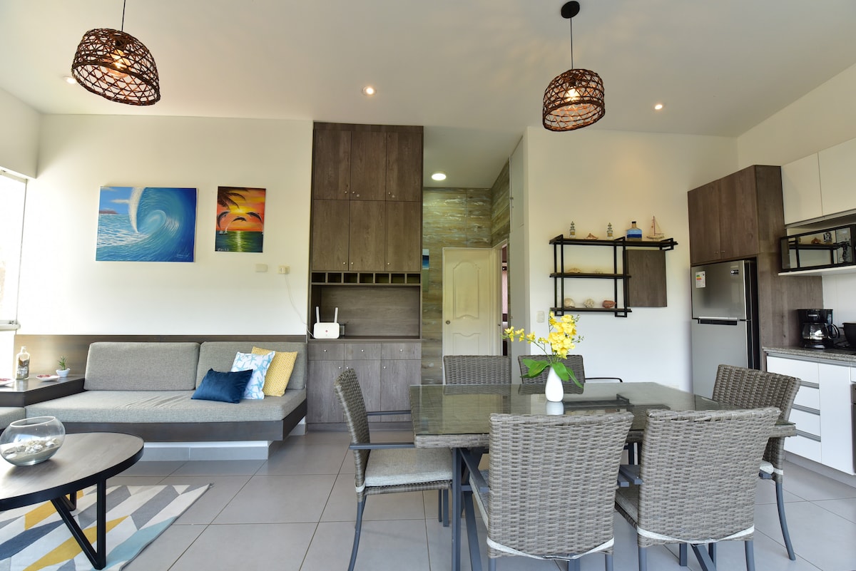 Disfruta del mar a sólo unos pasos, nuestra casa de playa está en primera línea, perfecta para familias, parejas o grupos de amigos que buscan regalarse sin preocupaciones. - Acceso a la playa. - Piscina - WiFi de alta velocidad - 4 cómodas habitaciones con aire acondicionado. - Tv Smart en las habitaciones. - Cocina totalmente equipada. - Agua purificada, lista para beber. - Zona para parrilla. Ideal para escapadas de fin de semana o vacaciones largas ¡tú playa privada te espera!