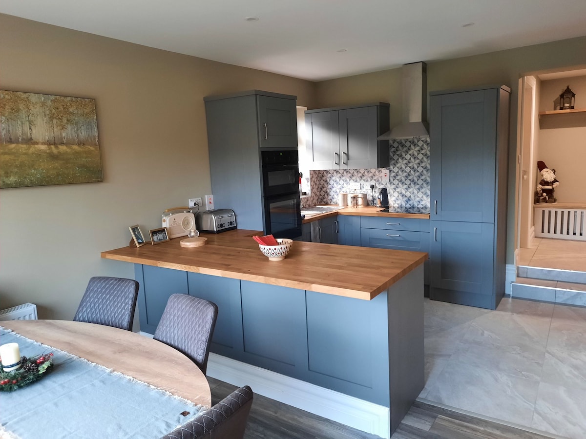 E Gray House es un refugio de lujo situado en un hermoso entorno forestal y justo en la vía verde de Waterford. Está a poca distancia en bicicleta de la ciudad de Dungarvan y de varias playas. Aunque puede que te resulte difícil salir del elegante y cómodo interior cuando estés sentado frente a la estufa leyendo un libro o viendo tus programas favoritos proyectados en nuestra pantalla retráctil de 180 cm. Hay una hermosa vista al mar desde el acogedor dormitorio del altillo que te persuade suavemente para que disminuyas la velocidad y disfrutes del tiempo fuera.