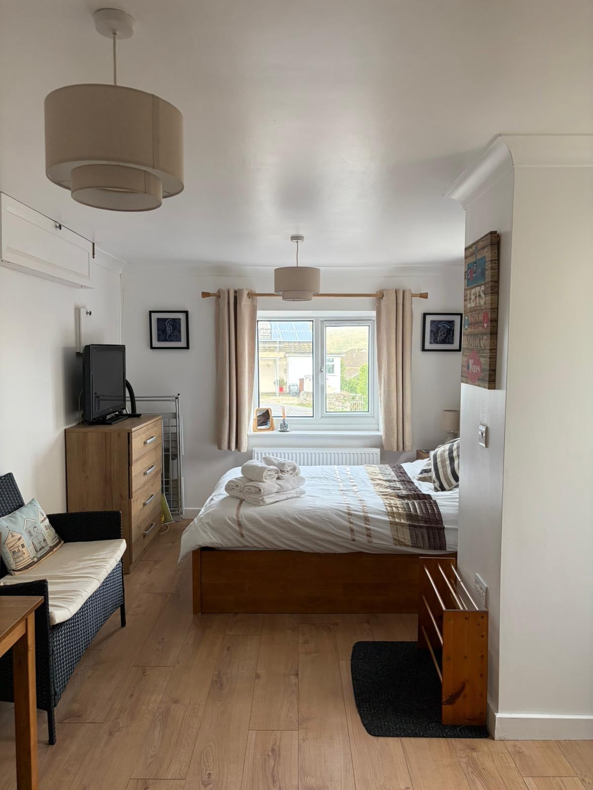 Apartamento independiente, con entrada privada, salón con nevera, microondas, hervidor de agua, tostadora y TV. Sofá grande, mesa y sillas, platos y cubiertos incluidos. Dormitorio separado y cuarto de ducha. A pocos minutos a pie de la famosa playa de surf de Perranporth y cerca de tiendas, pubs y restaurantes (incluidos comida para llevar). El club de golf está justo al final de la colina. Hay una parada de autobús frente a la propiedad. Ideal para caminar por el sendero costero. Tenemos aparcamiento para 1 coche.