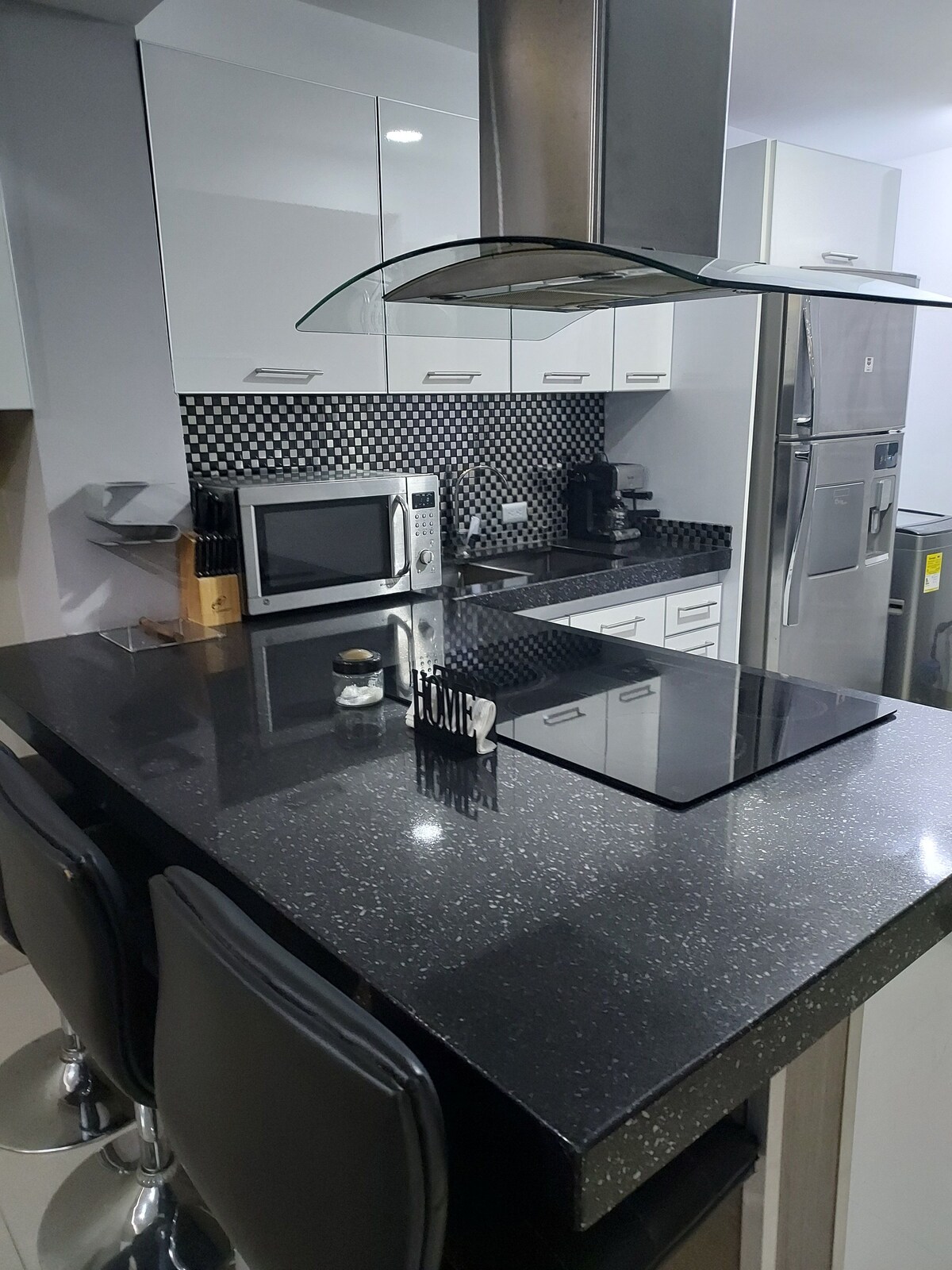 Estarás cerca de todo en este alojamiento céntrico. Acogedor apartamento ubicado en Alta Vista Norte, cerca de los principales centros comerciales, restaurantes, supermercados, panaderías, farmacias… Cuenta con 2 habitaciones, una cama matrimonial en cada cuarto, 2 baños, lavadora y secadora, tanque de agua, cocina equipada, televisor con cable e internet. *** Ofrecemos servicio de alquiler diario de carros