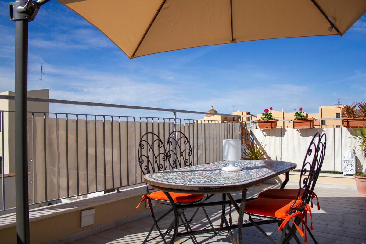 PENTHOUSE 🏠 parte ático Cuarto piso con ascensor que llega al tercer piso que consta de: 1 .ª habitación doble.🛌 Segundo dormitorio doble 🛏 + 1 cama individual 1 .ª sala de estar con cocina abierta completa y equipada. 👨‍🍳 Primer baño con ducha 🚿 La segunda gran terraza al aire libre con una inclinada junto a la sala de estar está equipada con una mesa y sillas para disfrutar de agradables momentos de relajación al aire libre. 🌇 Aire acondicionado en todas las habitaciones, lavadora, ropa de cama y toallas wifi
