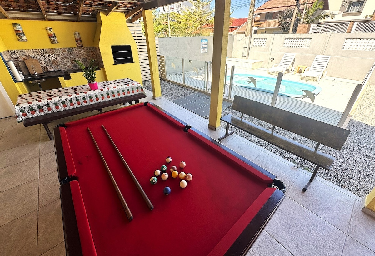 ¡Bienvenidos a nuestra casa en Bombinhas! Situada en un condominio cerrado en la playa, tiene 4 dormitorios para hasta 9 personas. ¡Todavía tenemos una barbacoa en el balcón con vistas al mar! Casa de 3 pisos: 1ª planta: 1 dormitorio con litera + garaje cerrado para dos coches 2º piso: sala de estar + balcón + cocina + lavandería + 1 baño + 1 aseo 3ª planta: Balcón + 3 dormitorios (uno en suite) + 2 baños ¡El condominio cuenta con servicio de seguridad + conserje! No hay piscina ni ropa de cama