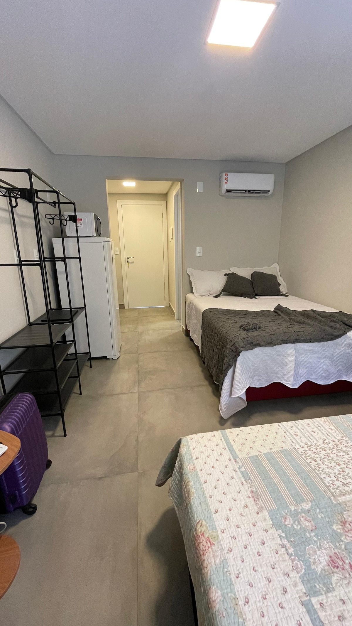 Apartamento estudio para 2 personas, gran balcón con parrilla, cocina completa; baño; sala de estar con cama doble, colchón de almohada doble, TV inteligente. Cerca de la playa, mercado, restaurantes. El departamento cuenta con un carrito de playa, 3 sillas, nevera, pelota, frescobol, tabla de body. Tenemos bicicletas para prestar a los huéspedes. Para 3 personas es estrecho, por lo que solo cabe si es un niño, llama para obtener más información. Tenemos una opción de decoración para fechas especiales. Consulta los precios después de reservar.