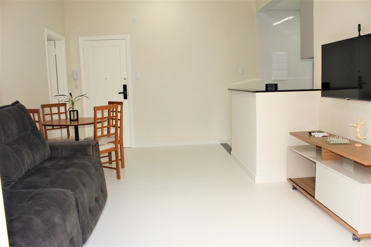 Apartment 2611, with its 48m², offers our guests the experience of watching the sunset from their bed. The apartment is practical and super comfortable. The space is ideal for couples and business travelers, and can also accommodate a third adult or up to two children. Perfect for guests with dogs (we accept small and medium-sized dogs weighing up to 15kg for an additional fee of R$120.00). Cats are not allowed. It will certainly bring you memorable moments in the best condominium in Santos!