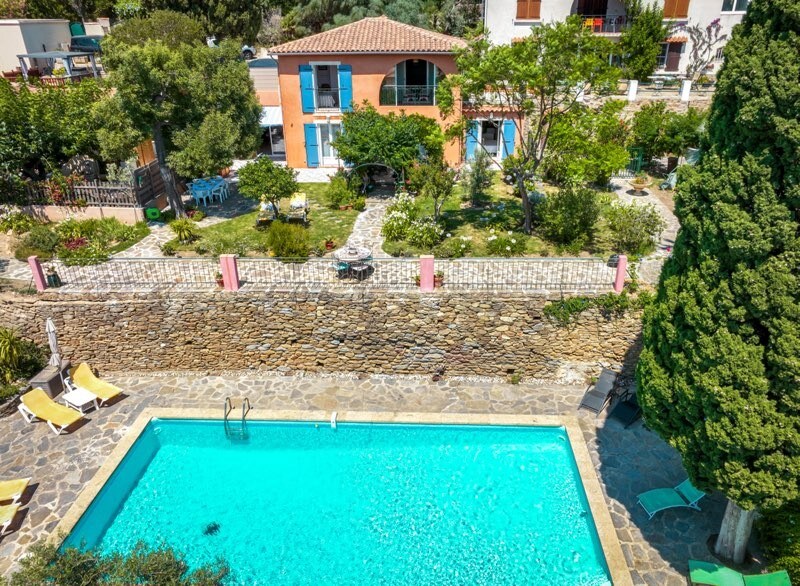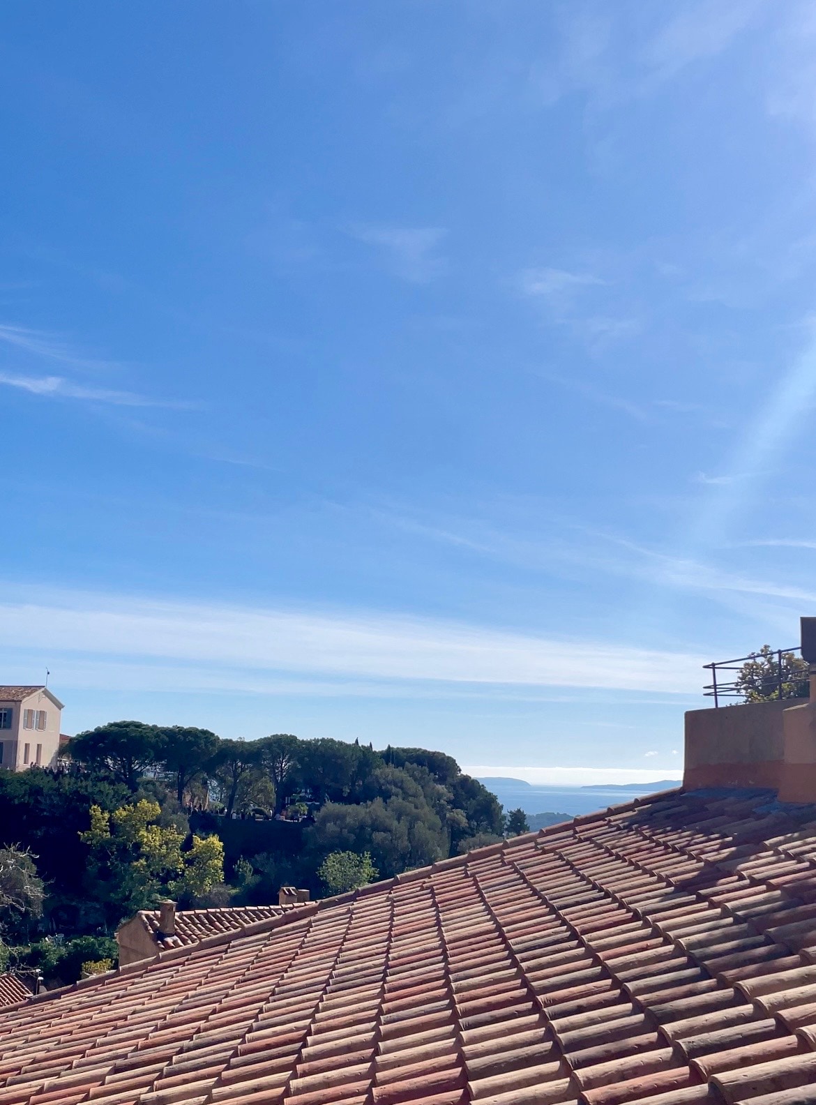 You will be our only guests in our heaven of peace! You have the option of renting either our luxurious 33 m2 (353 sq2) studio, equipped for two people, or this same studio plus an extra room, for four people maximum (60 m2- 642 sq2 total) You would benefit from a 86 m2 (920 sq2) private terrace with a 180° panoramic breath-taking view on the Mediterranean and the Îles d’Or, as well as an amazing pool reserved only for our guests, overlooking the villa, with an equally incredible view!