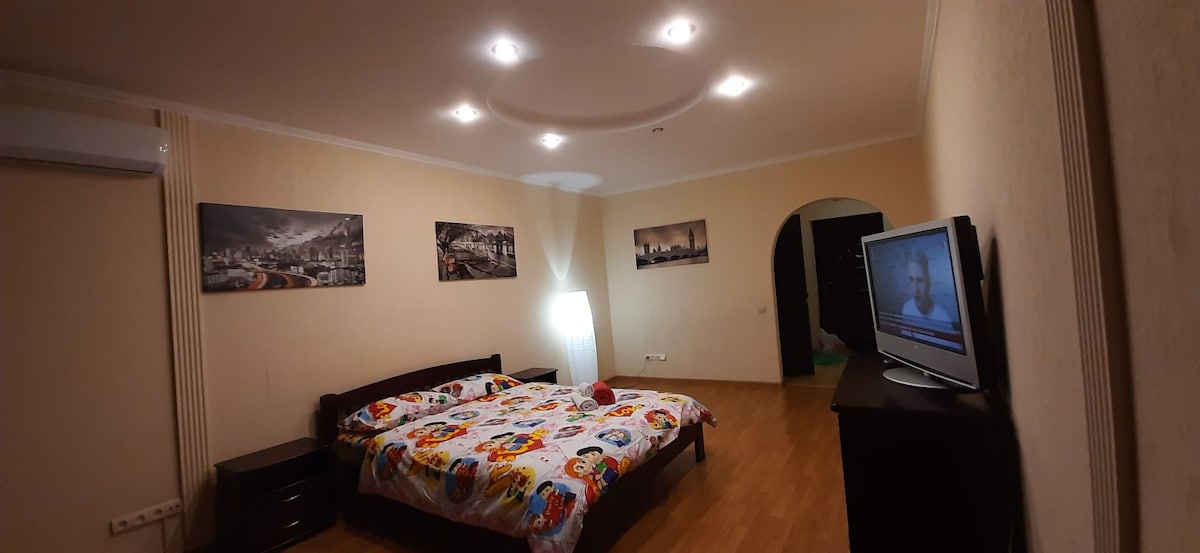 Two metro stops from the center of the capital, wonderful apartments. Everything you need is nearby for a comfortable stay. Metro 3 min walk. Supermarket big Novus next to the house. Recreation area, Dnieper river. Exhibition center, theater, restaurants of Ukrainian cuisine in 3 min. And much more.