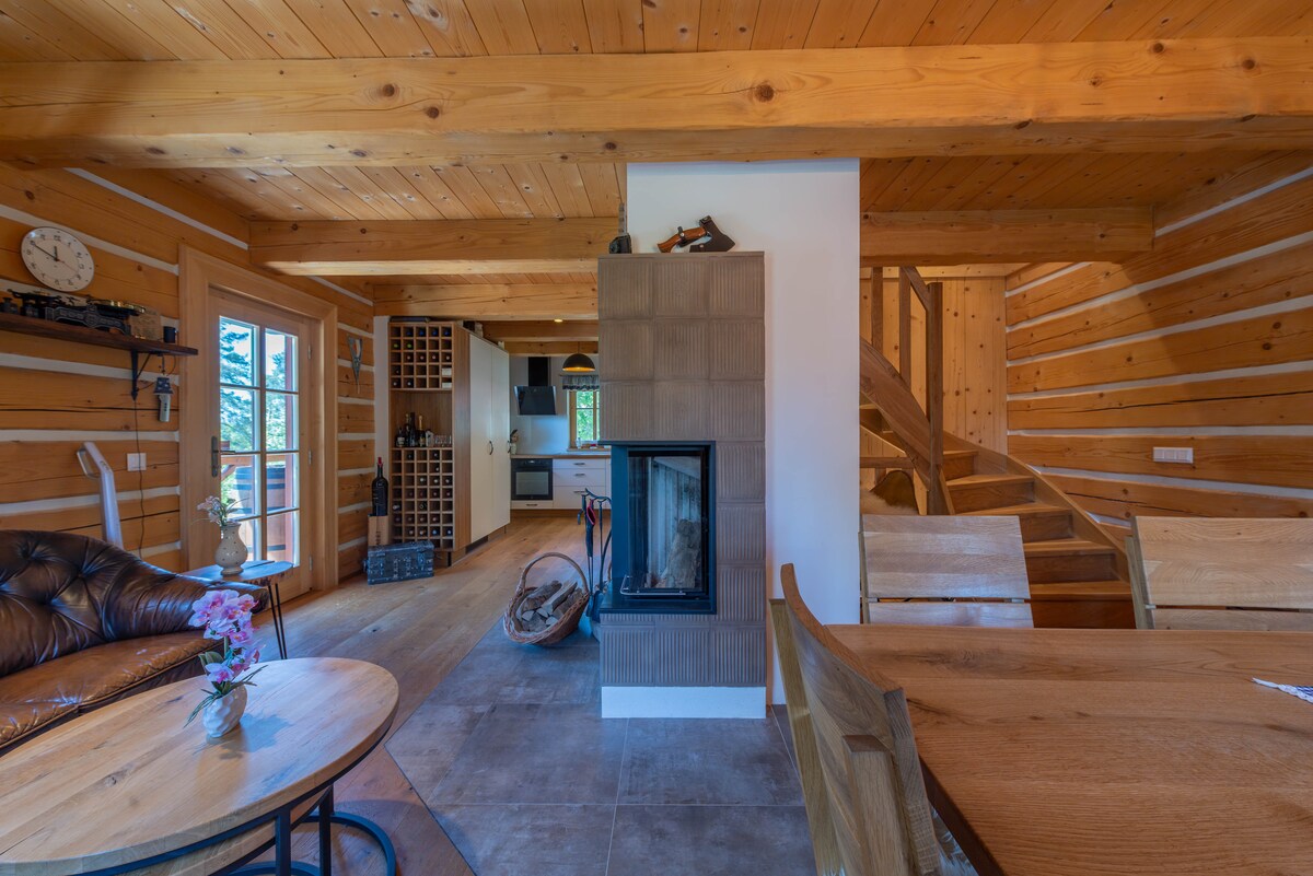 ✨ Madera bajo las estrellas: la magia del paraíso bohemio 🌲 Cabaña de madera | 🛏️ 8 huéspedes | 🔥 Chimenea y sauna | 🔭 Telescopio | 🌌 Escápate a la naturaleza Alojamiento elegante para 8 personas a menos de una hora de Praga🚗. Un lugar ideal para familias, amigos y parejas que buscan paz absoluta, comodidad y experiencias únicas en el corazón de la hermosa naturaleza del paraíso bohemio ✨🏞️