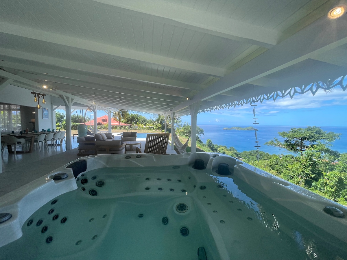 Ubicada en un mirador natural con vistas al mar Caribe, la Villa Blue Moon de 5 estrellas es una de las villas excepcionales que ofrece *Blue Haven Villas Guadalupe*. Duerme 2 personas. - Piscina de agua salada a solo unos pasos de la cama súper tamaño king frente al mar con vistas sin oposición. - Mosquiteros en ventanas y cama. - Cocina totalmente equipada; Nespresso, lavavajillas y lavadora, horno... - Vista de 180° y acceso al mar a uno de los lugares de esnórquel más hermosos. - equipo de snorkel - Estacionamiento, aire acondicionado, barbacoa, Wi-Fi