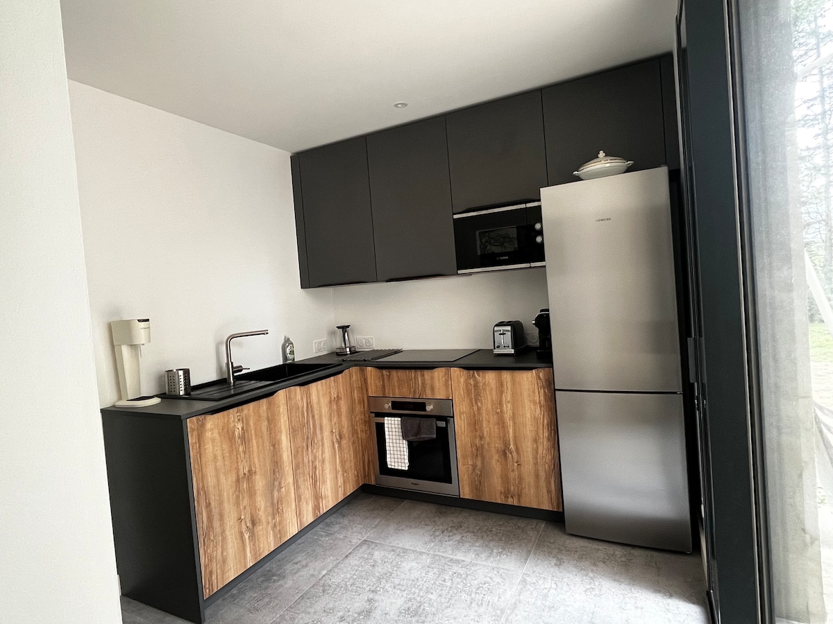 Bienvenido a esta encantadora casa que consta de una sala de estar con sofá cama de calidad, cocina abierta, un dormitorio cómodo, un baño moderno y un inodoro independiente. Disfrute de una gran terraza de madera ideal para sus momentos de relajación y un jardín. El estacionamiento totalmente cerrado está asegurado para al menos dos vehículos. Con una ubicación ideal, esta casa le ofrece tranquilidad y comodidad, a la vez que está cerca de las comodidades locales.