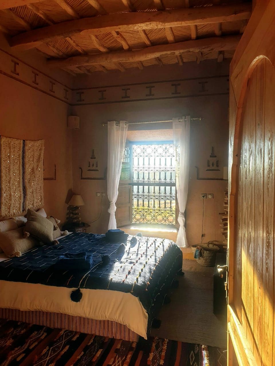 Nuestra Kasbah es un antiguo edificio tradicional hecho de adobe, paja, bambú, madera de eucalipto y hierro forjado. Estos materiales aíslan de forma natural la temperatura interior: manteniendo la frescura en verano y el calor durante el invierno. Después de un año y cuatro meses de duro trabajo, la Kasbah está totalmente renovada y tiene un toque increíble. Consta de ocho habitaciones, un restaurante y terrazas de árboles conectadas por un puente de madera que permite admirar el impresionante paisaje.