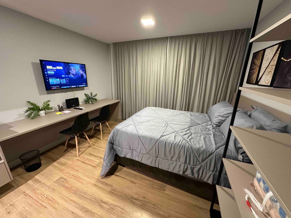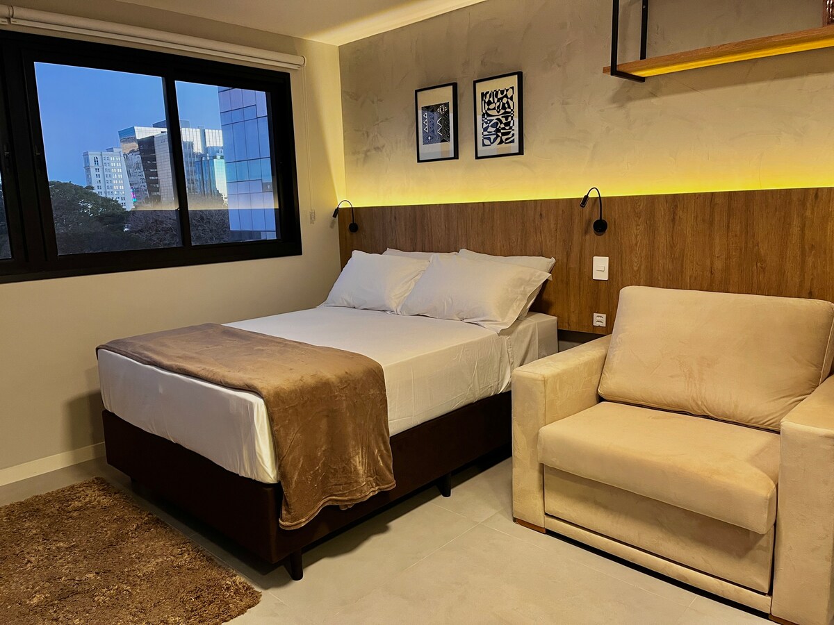 🏡 Nosso estúdio moderno e aconchegante, ideal para até 2 pessoas, oferece um espaço privativo, Wi-Fi rápido e todo o conforto necessário. O prédio novo conta com rooftop, coworking, academia, espaço gourmet, lavanderia e piscina com borda infinita. Estamos a 11 minutos do aeroporto e 12 da rodoviária, com fácil acesso a bares, restaurantes e academias. Segurança garantida com fechaduras digitais. Estadia tranquila, prática e completa, com tudo para seu conforto. ✨