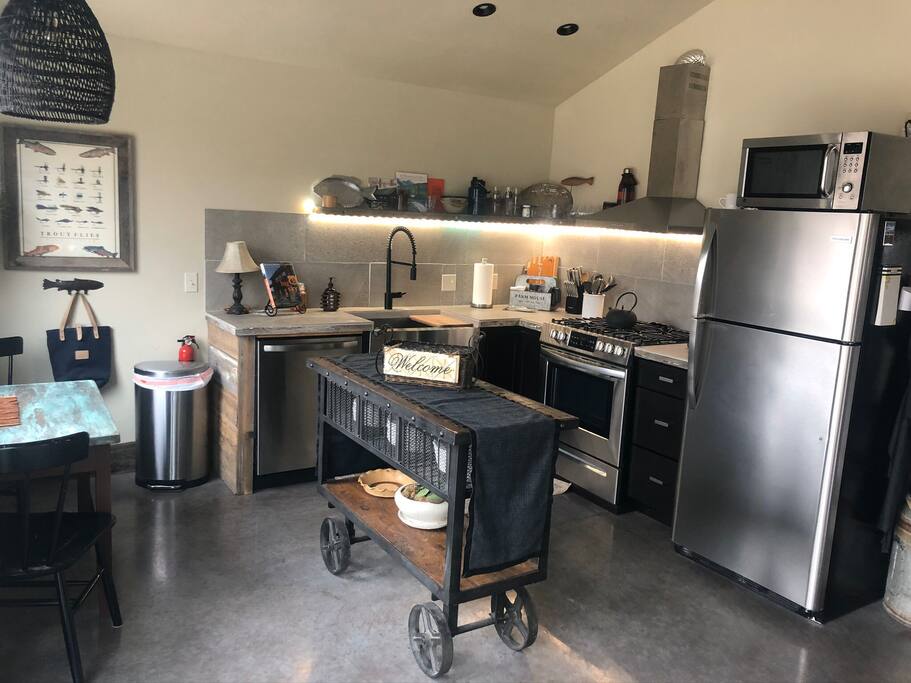 La Fish House está situada en las afueras de Bozeman, Montana, junto al río Gallatin, y está orientada a los entusiastas del aire libre. También está situado enfrente del campo de golf Cottonwood. Está situado en el centro de Bridger Bowl, a 27 millas, Big Sky, a 45 millas, el aeropuerto internacional de Bozeman Yellowstone, a 15 millas, y el parque nacional Yellowstone, a 84 millas... y a solo 8 millas de Bozeman. ¡Ven a disfrutar de una estancia en la Fish House, en uno de los mejores ríos de pesca con mosca del mundo, justo en tu patio trasero! La Fish House tiene muchas características de última generación. Se accede a la entrada de la casa con tu teléfono en una aplicación. La iluminación Hue y la iluminación por movimiento ayudan a iluminar el espacio, tanto por dentro como por fuera. Se proporciona Internet de alta velocidad y acceso a Apple TV. La Fish House, aunque solo tiene 750 pies cuadrados, tiene todas las comodidades de un hogar. Tiene calefacción radiante en los suelos. La cocina tiene una nevera de tamaño completo, lavavajillas, cocina de gas y microondas. El baño, con sus accesorios de alta gama, crea un espacio único con la ducha a ras de suelo de madera flotante y controles táctiles. El espacio al aire libre es una de las zonas más relajantes de los alrededores. Hay escalones que te llevan al río Gallatin, con escalones de roca para acceder al río. Hay una nueva parrilla de gas Weber en el patio. Y cuando el tiempo lo permite, hay tumbonas junto al río o tumbonas en el patio. Un lugar perfecto para una siesta o un libro. Los huéspedes pueden aparcar justo enfrente de la casa de pescadores. Los propietarios, Todd y Traci, viven al lado en la casa del río, que actualmente están renovando. Por lo general, están disponibles si es necesario, pero permiten que los huéspedes tengan su propio espacio. Tanto Todd como Traci crecieron en Bozeman, por lo que están bastante familiarizados con la zona y sus servicios. La Fish House es única por estar en el campo, enfrente del campo de golf Cottonwood y en el río Gallatin, pero a solo unos minutos de restaurantes locales, tiendas y gasolina. Hay 3 edificios principales en la propiedad, siendo la Fish House la central con el Driftwood Tree iluminado en el centro. ¡No hay llaves que perder o devolver! Esta propiedad ofrece una entrada segura y sin llave con una cerradura inteligente August. Puedes bloquear y desbloquear la puerta con tu teléfono inteligente, utilizando una llave virtual única o un código de entrada personal que se te emitirá durante tu estancia.
