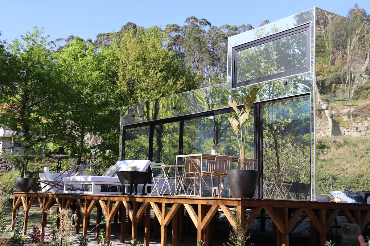 The Gass House es una casa móvil hecha de acero y vidrio. Aislado en la naturaleza y colgando de un acantilado, esto el espacio ofrece una vista relajante al río Ave. El espacio es ideal para aquellos que buscan estar cerca de la naturaleza mientras que también tiene la comodidad de estar cerca de los servicios de la ciudad: restaurantes, tiendas de comestibles y tiendas están a solo 2 km de distancia. Solo después de septiembre de 2024, la casa de cristal tendrá el aire acondicionado para los días fríos y calurosos. La Casa de Cristal tiene un jacuzzi privado y una piscina compartida.