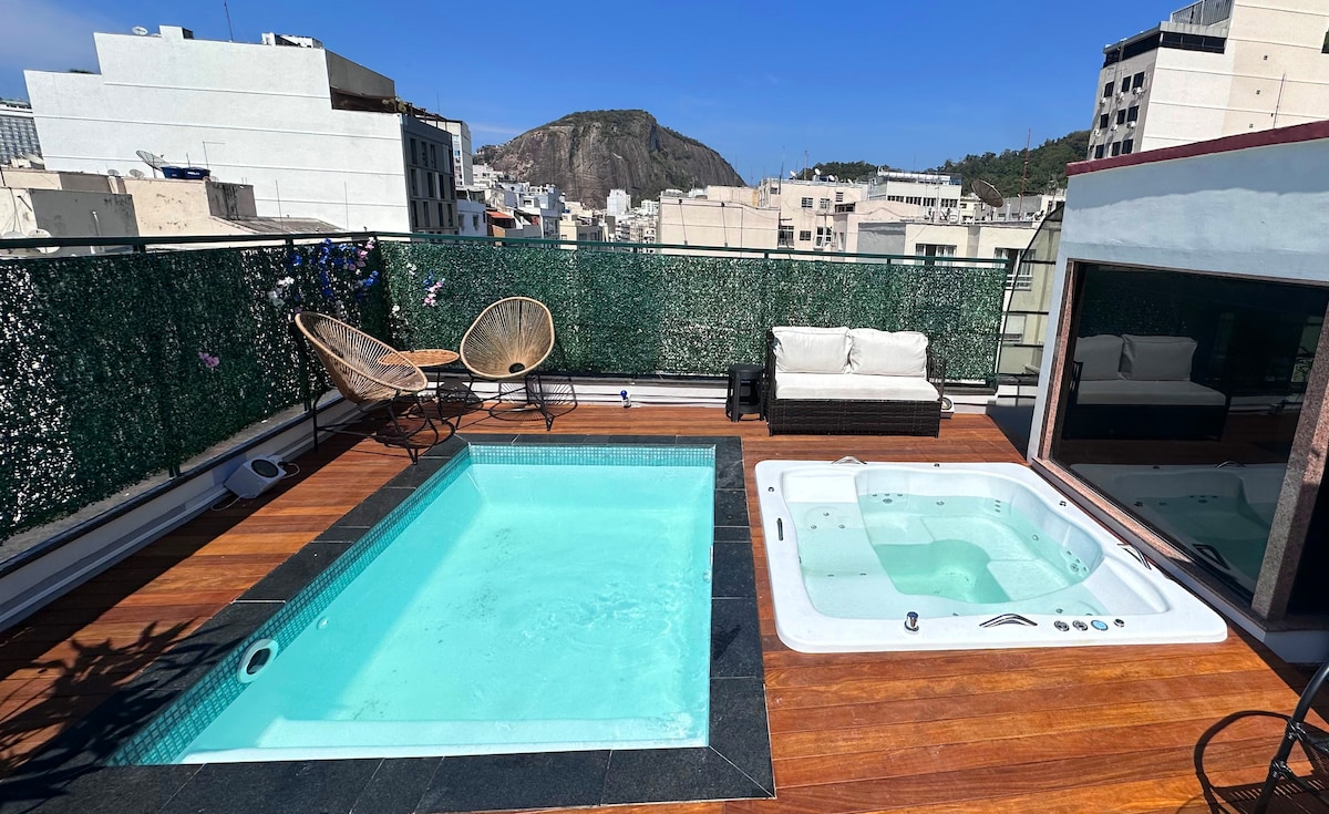 Desfrute de uma experiência elegante e luxuosa. El apartamento, recientemente renovado en 2023, cuenta con una amplia sala de estar y comedor, una cocina totalmente equipada, un dormitorio con una cama king size (ancho de 185 cm) y 2 baños nuevos. En la sala de estar, hay un sofá cama para un tercer huésped. La azotea también se puede utilizar. La casa tiene ascensor. A solo 3 minutos a pie de la famosa Playa de Copacabana (Posto 4). Próximo el metro, numerosos restaurantes y supermercados.