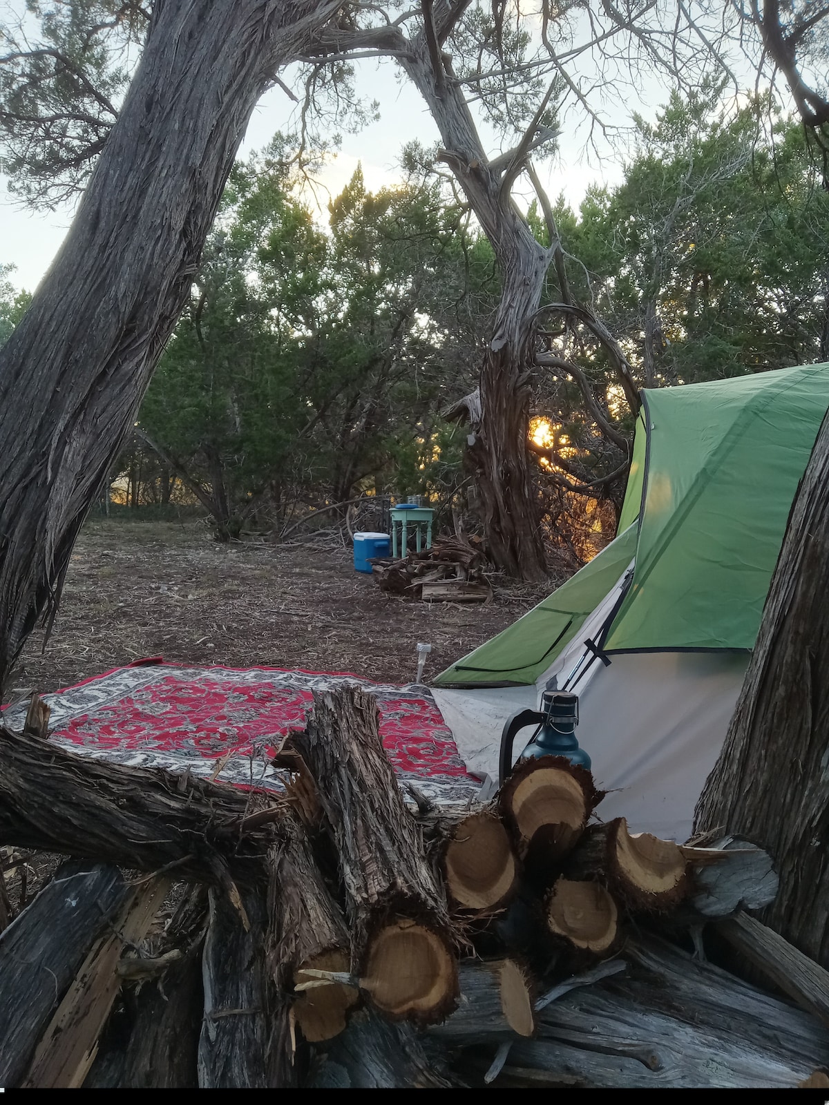 Safari ✧aislado de 5 acres: un refugio aventurero dentro de un refugio de animales exóticos de 1700 acres. Tienda ✧glamping: totalmente aislada, con aire acondicionado y calefacción para una comodidad durante todo el año. Acceso al✧ río a solo 3,5 millas de la tienda: lugar privado en el río Lampasas para pescar, hacer kayak y observar la vida silvestre. ✧Observación de estrellas en una zona de cielo oscuro: relájate bajo las estrellas de Texas con hamacas, asientos en la terraza y un pozo para fogatas. Confort ✧sostenible fuera de la red: alimentado por energía solar al 95 %, con carga de vehículos eléctricos de nivel 2 y agua de lluvia purificada fría y caliente.