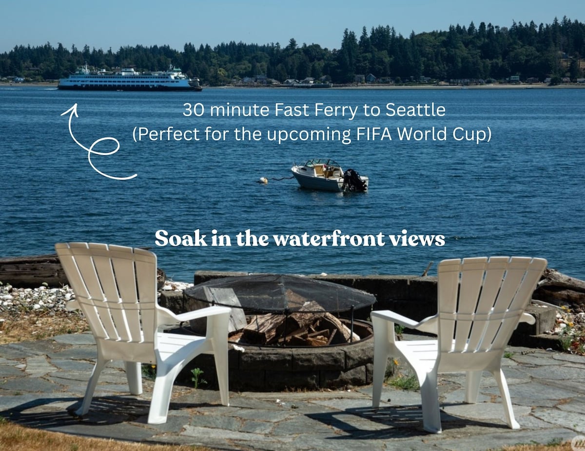 ¡Bienvenido a tu escapada frente al mar en Bremerton, Washington, ubicado en la pintoresca península de Kitsap con impresionantes vistas de Puget Sound! Esta elegante casa de 1 dormitorio ofrece la combinación perfecta de comodidad, conveniencia y aventura para un máximo de 4 huéspedes. ¡El acceso a la playa está a un paso de distancia y los huéspedes podrán utilizar los kayaks y las tablas de surf de remo que se proporcionan! ¡Disfruta de la chimenea frente al mar y presta atención a los peces, las focas y las ballenas ocasionales!