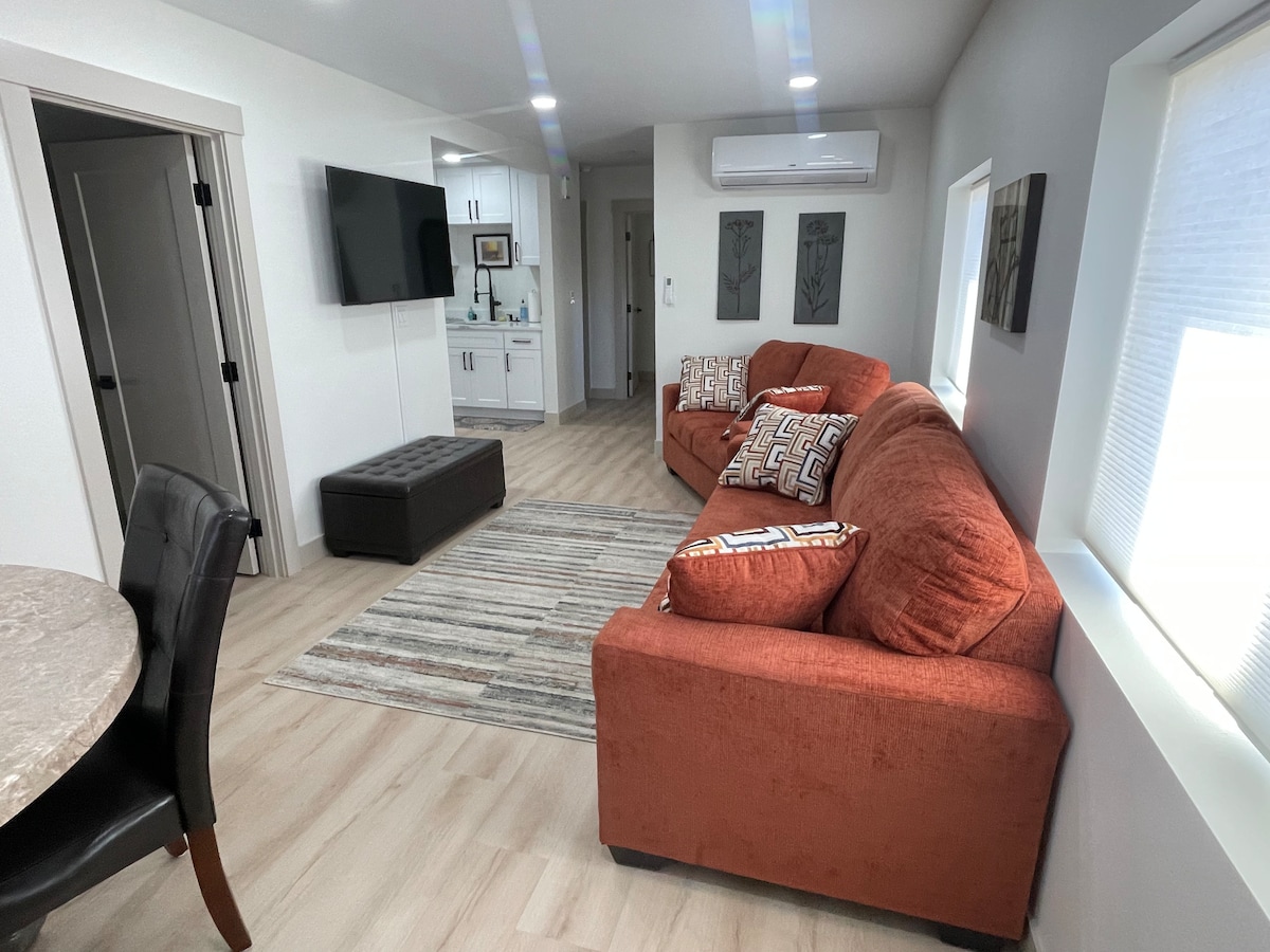 You can relax and enjoy this climate controlled 1 bedroom duplex with private parking and the amenities your used to at home. Full kitchen. Sit on our comfortable chaise couch and watch your amazon prime shows or cast your favorite streaming service on a 55in fire smart tv. Sleep in a king bed with a comfortable 12 in mattress and 2 types of pillows. Wake up and have pancakes and syrup with coffee or tea. 1.4 miles away from the Art District and 1.6 miles away from the Ferry Terminal.
