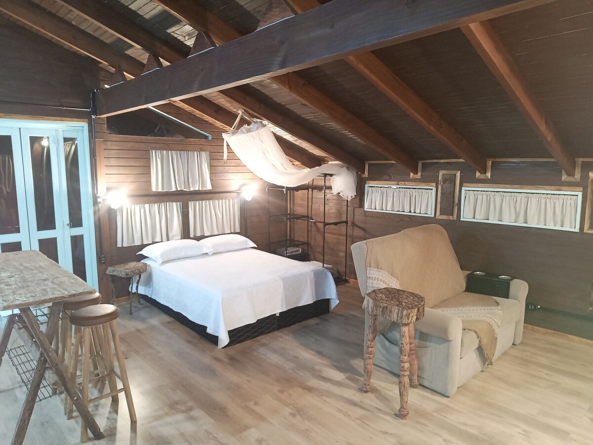 Este lugar único tiene su propio estilo. Amplio jardín, espacio para meditar, leer, hacer yoga, relajarse en la redoma escuchando a los pájaros, disfrutar de una hermosa puesta de sol. Esta casa tipo estudio fue planificada para traer el verde del jardín a su interior, con grandes ventanales. Este espacio busca ofrecer comodidad y calidez.