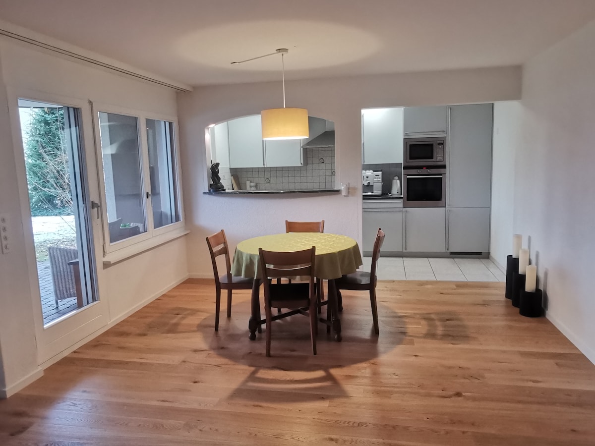 Una ubicación perfecta para familias o trabajadores, cerca de Aarau y bien conectado con las principales ciudades. - Casa inteligente moderna de 3 dormitorios en la planta baja. - A 3 minutos en auto/a 6 minutos en autobús del hospital. - Parada de autobús justo al lado del edificio. - A 15 minutos de Aarau, con excelentes conexiones con Zúrich, Basilea y Berna. - Cocina totalmente equipada con todo lo esencial de la cocina - Wifi de alta velocidad, TV inteligente y PS5. - Estacionamiento en el lugar. - Lavadora y secadora en el lugar para estadías prolongadas » ¡Ideal para viajeros de negocios o familias de vacaciones!