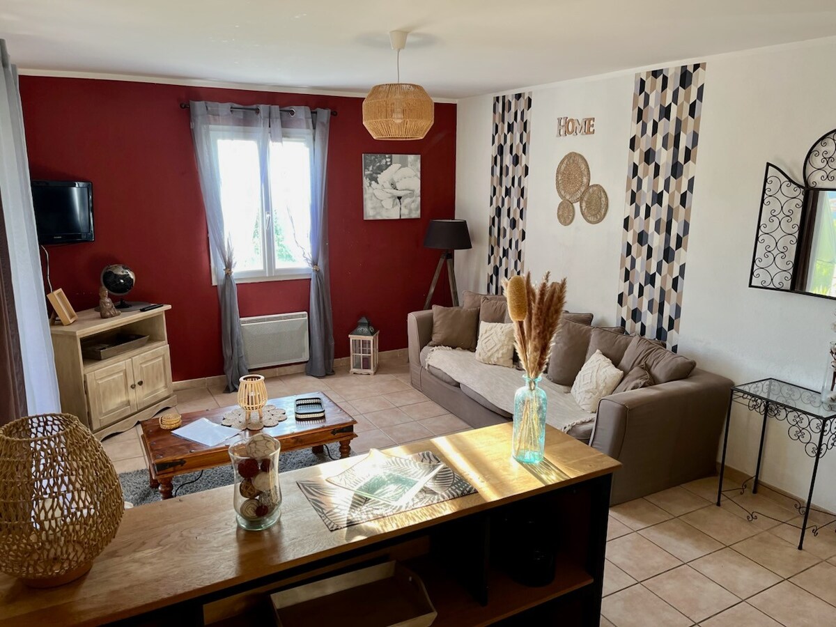 Apartamento semi independiente Plain Pied 48m2, residencia segura, piscina , a 1,5 km del centro histórico. Terraza cubierta: mesa, 4 sillas, 2 tumbonas. Gran sala de estar, cocina equipada con microondas, horno eléctrico, vitrocerámica, nevera, congelador, lavavajillas, TV. Salón con sofá cama para 2 personas en 160, baño: lavabo, bañera, ducha, lavadora. Habitación con cama de 160, mesitas de noche, armario grande. Entorno tranquilo y verde. Se proporcionan sábanas. Toallas adicionales 15€. PISCINA CERRADA EL 30 DE SEPTIEMBRE.