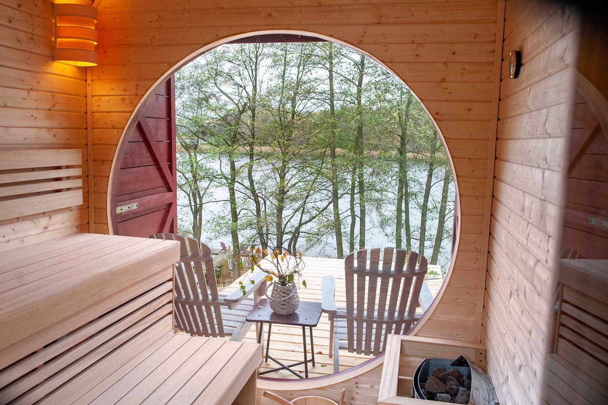 Este lugar único tiene su propio estilo. Esta encantadora casa de campo abierta todo el año fue creada para aquellos que valoran la proximidad de la naturaleza, el bosque y los lagos, pero no quieren renunciar a la comodidad. Totalmente equipado, con una cocina pequeña, baño y espacio acogedor para relajarse, puede alojar hasta 7 personas. Cuenta con dos dormitorios con camas dobles, sofá cama y colchón futón. En el exterior, hay una terraza con jacuzzi durante todo el año y vistas al lago, una zona de relajación, una barbacoa y un jardín privado.