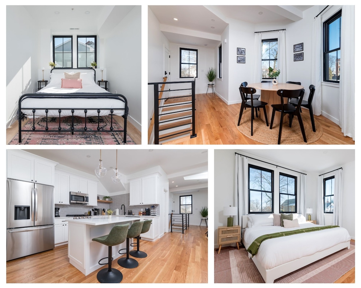 ¡Alójate en este limpio, luminoso y moderno apartamento en tu próximo viaje familiar o de negocios a Boston! Disfruta de 4 amplios dormitorios, 2,5 baños y dos plazas de aparcamiento privadas fuera de la calle incluidas. Se proporcionan todos los servicios: electrodomésticos de acero inoxidable, cocina de gas, unidades eficientes de aire acondicionado/calefacción, lavadora/secadora, wifi, TV y patio trasero. Ubicada en un tranquilo barrio residencial cerca del río Charles, nuestra casa está a poca distancia a pie de la Escuela de Negocios de Harvard y del estadio de Harvard.