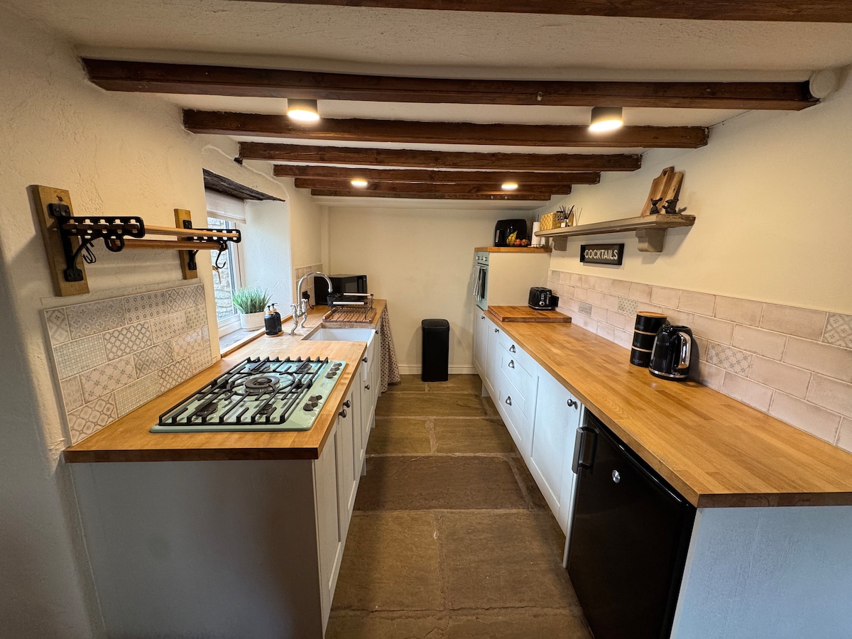 Casa de campo independiente de un dormitorio en el campo con muchos paseos y un pub cercano en el pueblo. La casa de campo ofrece cocina con nevera que tiene una pequeña sección de congelador, lavavajillas, lavadora, accesorios de cocina, té y café, mesa de comedor y sillas para cuatro. Sala de estar con cómodos asientos y TV. El dormitorio tiene una cama tamaño king, espacio para una cama individual (bajo petición) y espacio para una cuna (no se proporcionan cunas). Baño con ducha a ras del suelo y bañera independiente. El alojamiento también incluye aparcamiento.