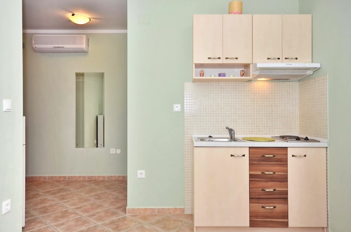 Disfrutarás de este hermoso apartamento decorado artísticamente. El apartamento está recién amueblado y es perfecto para parejas. Tiene balcón, vistas y un aspecto increíble en hermosas puestas de sol ,y consta de cocina con comedor, habitación y baño. El apartamento tiene una buena ubicación, a solo unos minutos a pie del centro de la ciudad, clubes y playas.