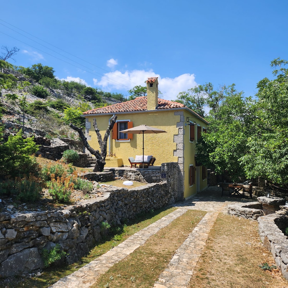 Esta es una casa en miniatura construida a partir de un antiguo refrigerador integrado en paredes de piedra. Todos los muebles, carpintería y decoraciones son hechos a mano. Frente a la casa hay un pequeño lago lleno de vida y un gran olivar. Detrás de la casa hay un pequeño bosque de pinos. Los huéspedes tienen a su disposición 2000 m2 de jardín. La casa está situada fuera del pueblo, a unos 1 km del mar (2 minutos en coche). El mercado está a unos 1,5 km. La ciudad de Krk y Malinska a 14 km, el puerto de ferrys de Valbiska a 6,3 km.