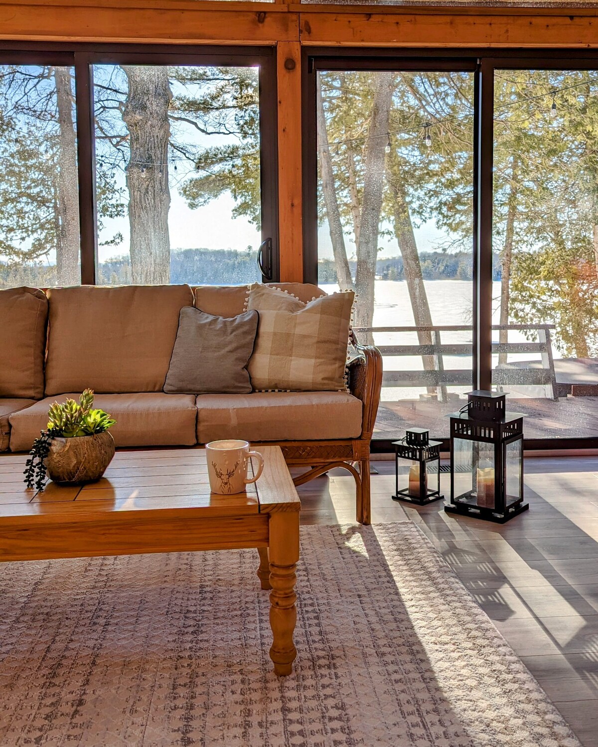 Vistas panorámicas al lago por dentro y por fuera, acogedor y relajante