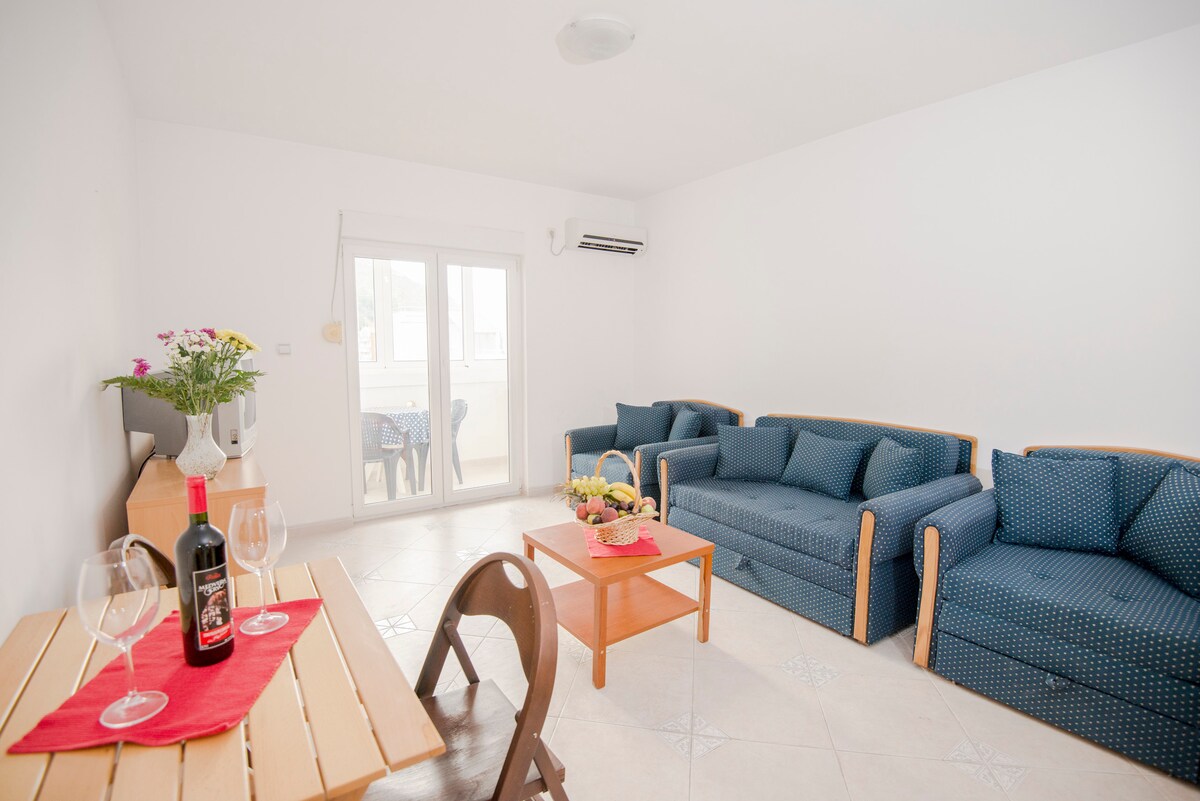 ¡Bienvenido a nuestro acogedor y cuidadosamente diseñado estudio en el corazón de Budva! Disfruta de tu café de la mañana en la terraza acristalada con vistas a la vegetación, a 10 minutos a pie de la playa y a 15 minutos del casco antiguo. El alojamiento está en un vecindario tranquilo, ideal para parejas, viajeros solitarios y cerca de todas las atracciones. Los huéspedes tienen estacionamiento privado gratuito en el garaje del edificio, lo que es una gran ventaja en Budva. El apartamento no está diseñado para niños.